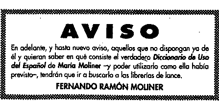 SE TRATA, PUES, SEGÚN SUS VENDEDORES, DE OTRO DICCIONARIO, PERO... CON EL MISMO NOMBRE Y DEL MISMO AUTOR. PUBLICADO ¿CON QUÉ DERECHO, FRENTE A LOS QUE LA LEY VIGENTE LE RECONOCE A LA AUTORA DEL AUTÉNTICO DICCIONARIO?: "CORRESPONDEN AL AUTOR LOS SIGUIENTES DERECHOS IRRENUNCIABLES E INALIENABLES: EXIGIR EL RESPETO A LA INTEGRIDAD DE LA OBRA E IMPEDIR CUALQUIER DEFORMACIÓN, ALTERACIÓN O ATENTADO CONTRA ELLA QUE SUPONGA PERJUICIO A SUS LEGÍTIMOS INTERESES O MENOSCABO DE SU REPUTACIÓN... AL FALLECIMIENTO DEL AUTOR, EL EJERCICIO DE LOS DERECHOS MENCIONADOS... CORRESPONDE, SIN LÍMITE DE TIEMPO, A LA PERSONA FÍSICA O JURÍDICA A LA QUE EL AUTOR SE LO HAYA CONFIADO EXPRESAMENTE, POR DISPOSICIÓN DE ÚLTIMA VOLUNTAD... EN SU DEFECTO, EL EJERCICIO DE ESTOS DERECHOS CORRESPONDERÁ A LOS HEREDEROS" (Arts. 14 y 15, Ley 22/1987, de 11 de noviembre, de Propiedad Intelectual. Los subrayados son nuestros) FERNANDO
