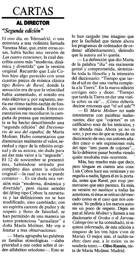 EL PAÍS, 10.11.1998 *PÁRRAFO ÍNTEGRAMENTE SUPRIMIDO EN LA "PRESENTACIÓN", SALVAJEMENTE MUTILADA, EN EL "OTRO" DICCIONARIO