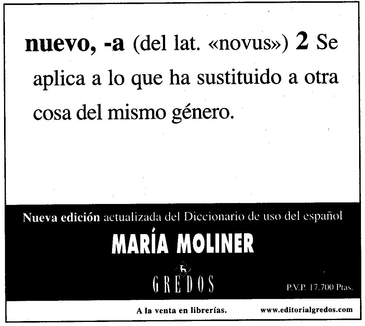 APÓCRIFO SIGUE VENDIÉNDOSE SIMULTÁNEAMENTE, TIENE INTERPUESTA UNA DEMANDA ANTE LOS TRIBUNALES CIVILES DE MADRID (17.6.99) SOLICITANDO -ENTRE OTRAS DECISIONES-, POR UN LADO, QUE SE CONDENE A LA EDITORIAL GREDOS, S.A., A RETIRAR DEL COMERCIO LA "SEGUNDA EDICIÓN", NO AUTORIZADA, DEL "MARÍA MOLINER" Y A PROCEDER A LA DESTRUCCIÓN DE TODOS LOS EJEMPLARES EDITADOS. Y, POR OTRO, A RESTITUIR A LIBRERÍAS Y COMERCIOS LOS EJEMPLARES AÚN EXISTENTES DE LA EDICIÓN AUTÉNTICA |